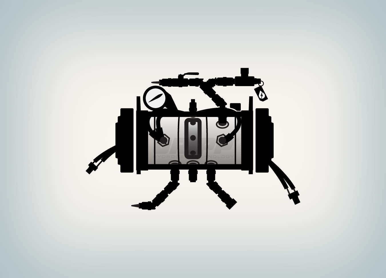 The logo is based on the process of electrolysis that takes place in their product–hydrogen gas is created by the application of electricity to salt water.